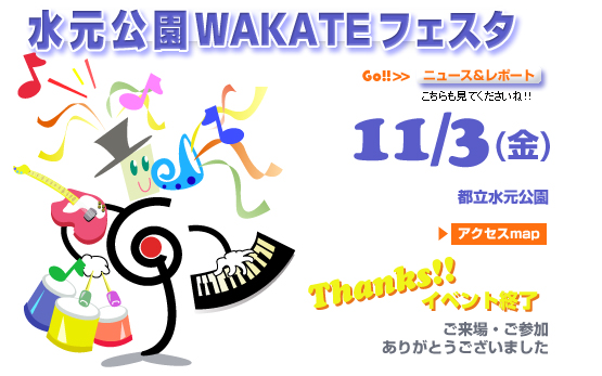 | 早いもので今回で6回目の「水フェス」は回を重ねる毎にグレードアップしてきました。恒例のフリーマーケットを始め、ペットイベントや野外ライブなど水元公園の魅力を最大限に引き出すイベントは3万人もの人に来場頂き、盛大に開催されました。 |